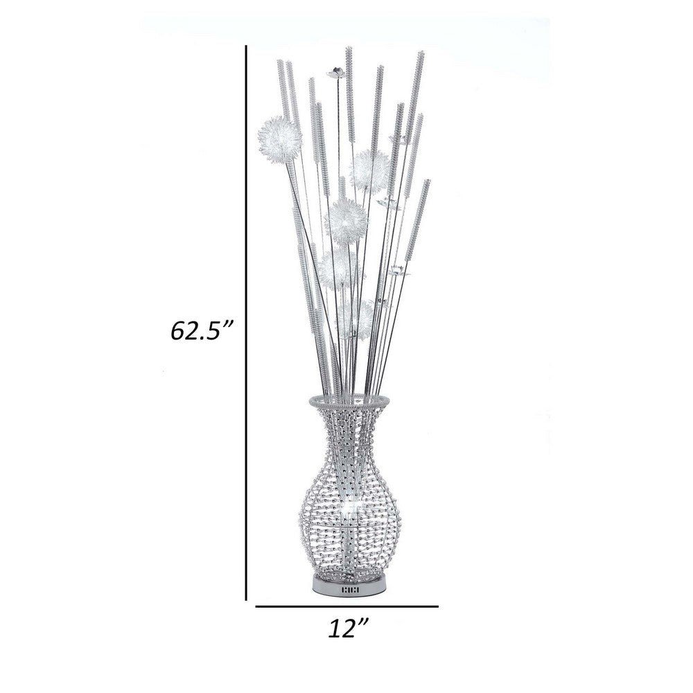 63″ Floor Lamp with Flower Vase Design – Metal Wire Base, Chrome Finish